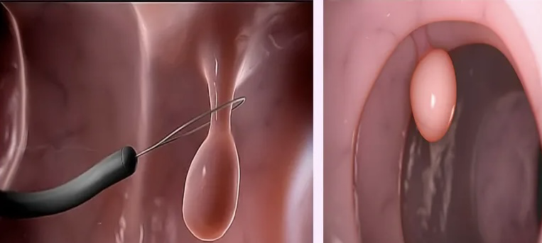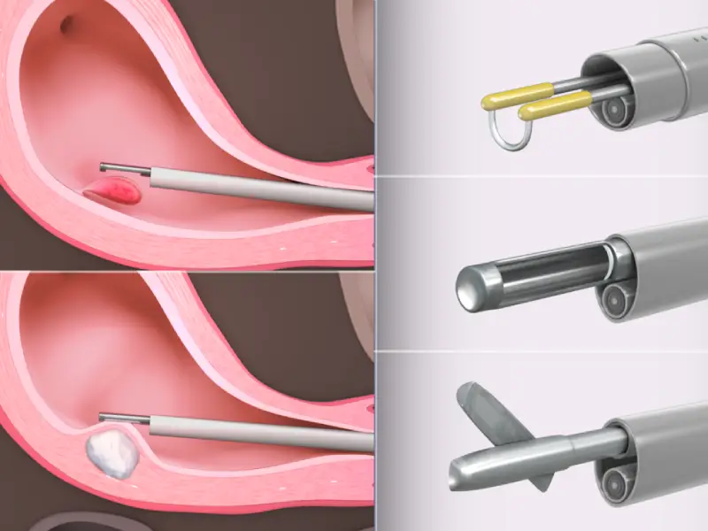 در این نوع عمل، پولیپها از داخل رحم برداشته میشوند.